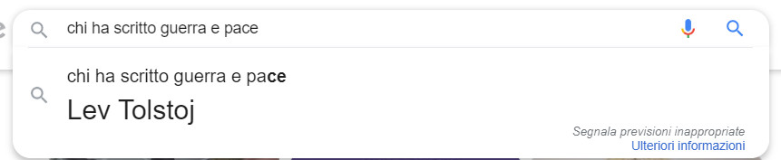 Addirittura, per alcune chiavi di ricerca la risposta viene visualizzata in un campo pop-up sulla barra di ricerca stessa.